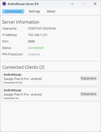 Your data never leaves your network. AndroMouse connects directly to your computer over WiFi—no cloud, no external servers.